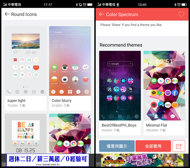 主題商店也有圖示的搭配可以給你預覽,或許你可以找到更棒的組合。