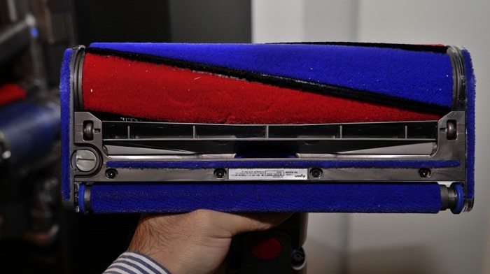 Dyson V6 Fluffy 使用軟質碳纖維滾筒吸頭,微塵碎屑一次吸除。柔軟的尼龍負責把大型顆粒捲入吸頭內;碳纖維刷毛則用來清除地板的靜電,以吸走更多微塵。