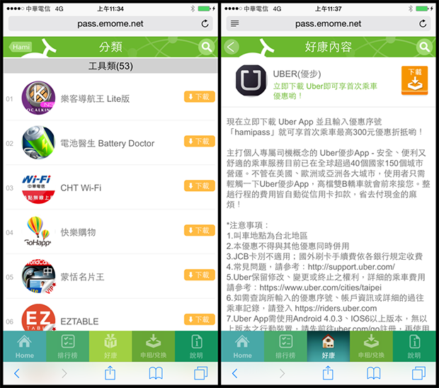 現在我每天都習慣到 Hami Pass 滑到「排行榜」和「好康」,看看最近有什麼好料的釋出,隨時都有意外的驚喜呢!