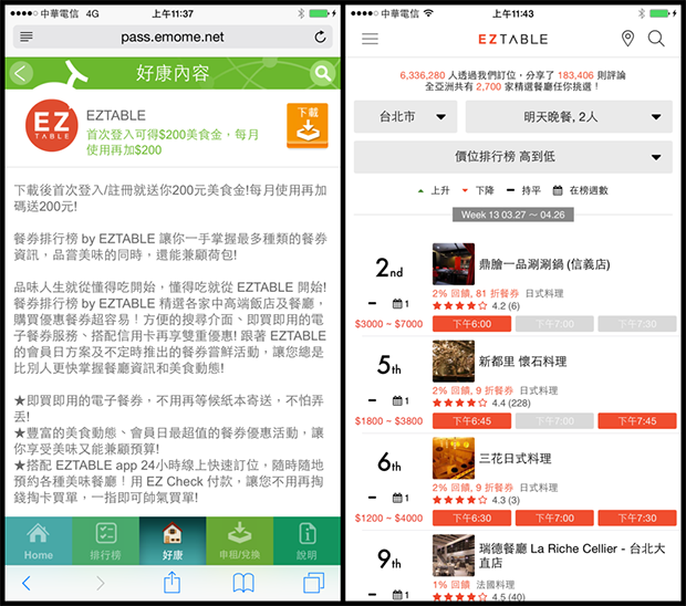 這裡絕對要分享一下好康的工具,像是網路餐廳訂位必用的 EZTABLE,現在首次登入就馬上贈送 200 元的美食金,9/30 前優惠再加碼,每月再加送 200 元美食金,實在是太甘心了,我一個月才繳 150 塊錢的月費而已耶!