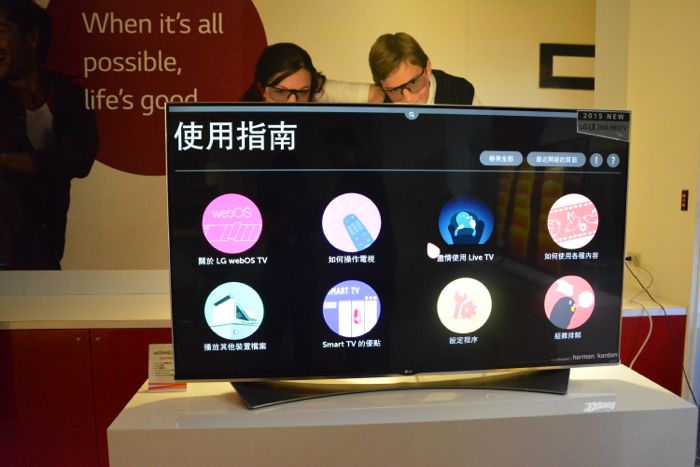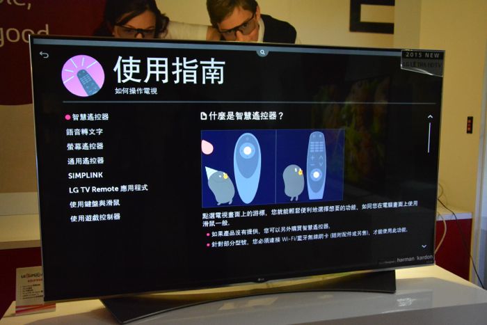 透過 LG 現場官方人員的介紹,原來透過電視的智慧遙控器可以進入 webOS 的畫面,再利用遙控器的指標來滑動選擇,而 webOS 的操作界面也設計的非常親切,讓使用者不論男女老少都能夠輕鬆的上手。