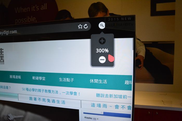 當進入到想要讀取的網頁時,還能夠透過右上角的畫面縮放比例來選擇想要瀏覽的大小。這邊可以看到當我們將網頁放至最大的 300% 的比例時,網頁依舊是清晰無比!
