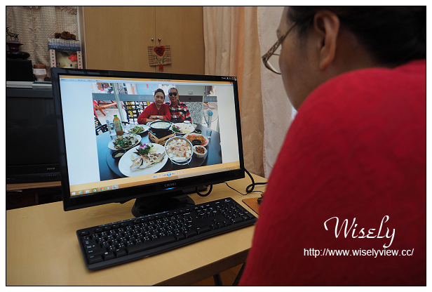 她說她想要用來上網看我寫些什麼,然後看我拍的照片,然後寫電子郵件和Line跟我傳訊息。如果有視訊可以用的時候,想看看我人在國外看到的畫面景象,而這些都是老花眼的她,透過大螢幕希望看到的內容。