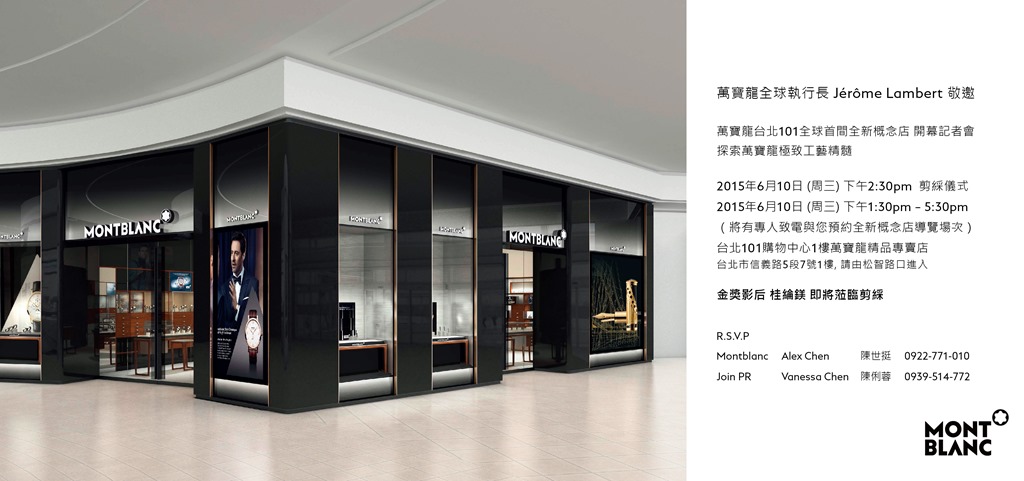 首間萬寶龍全新概念店在台北開幕,世界各地的概念店也將於隨後的幾個月內陸續開幕。如需進一步的資料,請上網瀏覽www.montblanc.com。