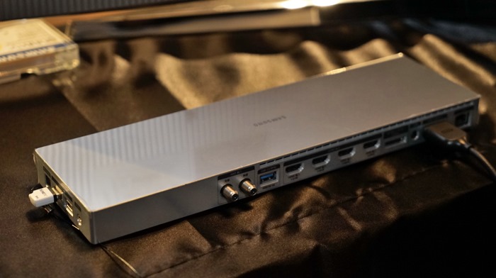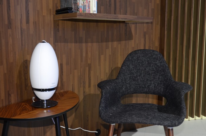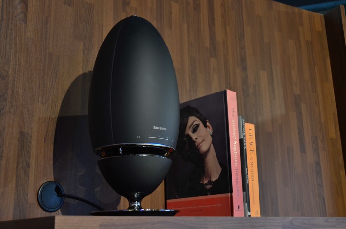 另外,Samsung 還推出一款具有 360 度無指向性的藍牙喇叭 WAM7501,使用環形輻射技術 ( Ring Radiator technology ),讓空間中的任一處都可感受到立體聲。初次聆聽的感受上,在全音域平衡有優異的表現,不會因為體積的關係而犧牲掉低音。在外型上的設計非常前衛,所以作為家中任一處的擺設都相當合適。