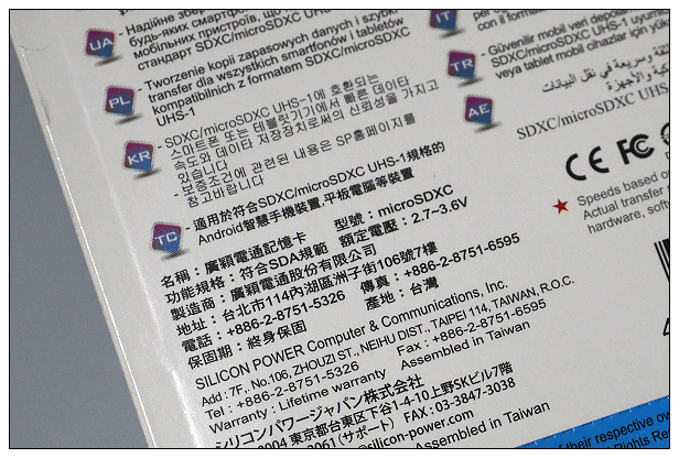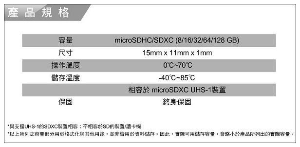比較重要的是背面,上頭有官網的連結及各項儲存檔案相對應的存放容量,另外它是專門給Android智慧型手機與平板電腦使用,並且有提供終身保固的服務。