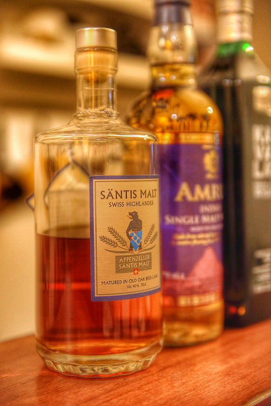 而最後加碼品嚐的,瑞士桑提斯單一純麥威士忌,是在啤酒桶裡釀造而成的,特殊的香氣讓大家忍不住要主辦人開放團購!大叔也就順便跟了一組。
