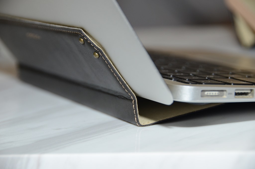 在打字時,有些朋友會喜歡具有傾斜的鍵盤,讓打字更舒服,但一般輕薄筆電都較少設計有角度的鍵盤,而這款皮套除了好看好握持外,還能架高鍵盤,讓打字更為舒適。
