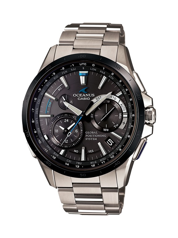 CASIO OCEANUS,搭載CASIO獨創的GPS衛星混合電波接收系統,可自動接收中國、北美、日本、英國、德國所發射的標準時間訊號,當手錶無法接收電波標準訊號時,將自動切換接收GPS訊號並自動調整時間,不受室內室外環境限制,顯示世界各地的精確時刻。僅需輕鬆按壓功能鍵3秒,即可透過GPS衛星訊號接收所在地位置與時刻資訊,依照當前位置自動分析時區,並自動調整所在地日光節約時間;搭配獨創的GPS演算系統,將定位地圖切割成500m x 500m進行密集定位判斷,讓時區、日光節約時間等資訊判斷更精確。採用量身訂製專屬腕錶的低電耗GPS接收晶片,撘配可提升受光發電效率的遮光分散型太陽能面板,與低電耗的電波接收相互補正,大幅降低手錶耗電量。