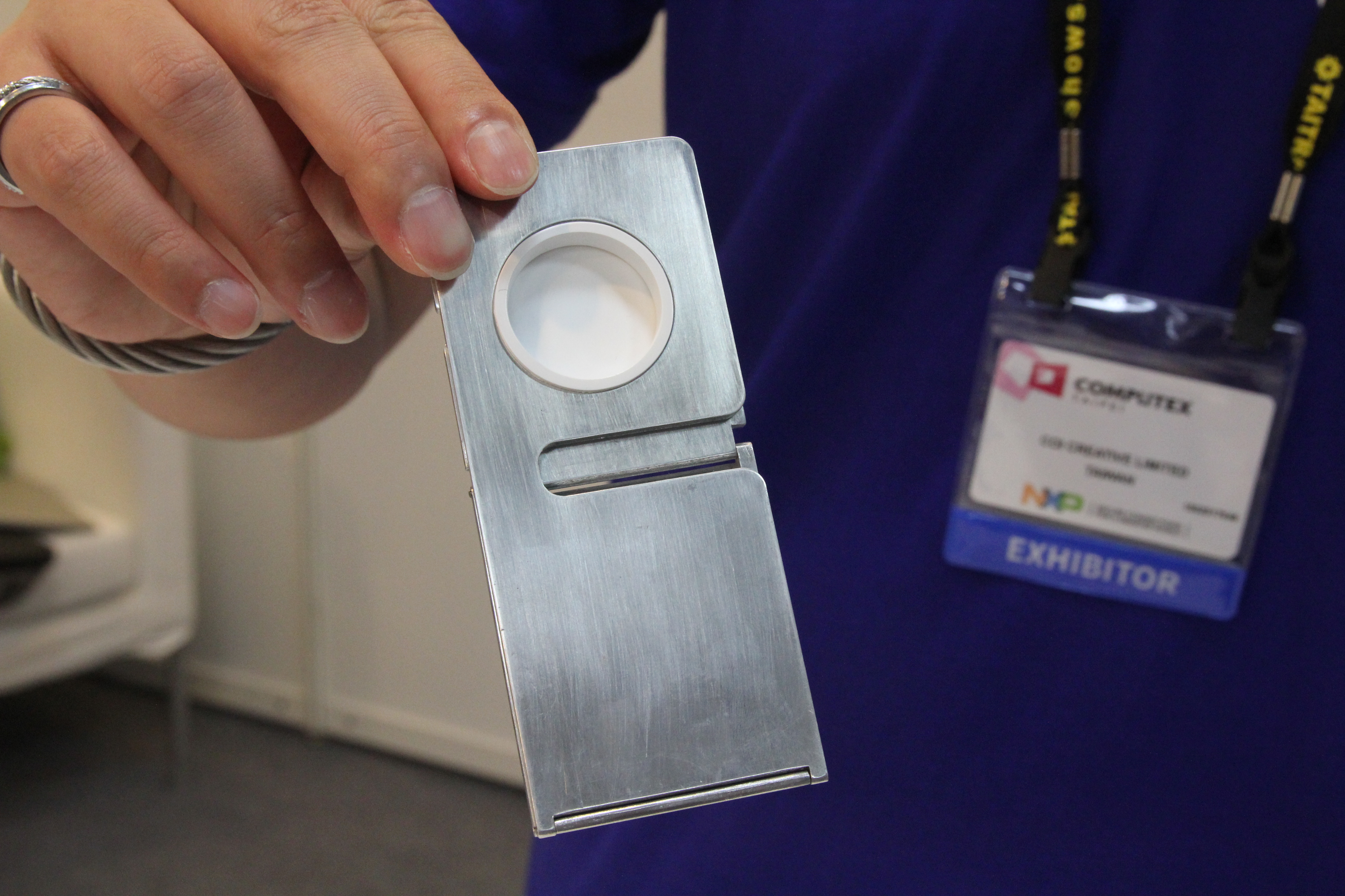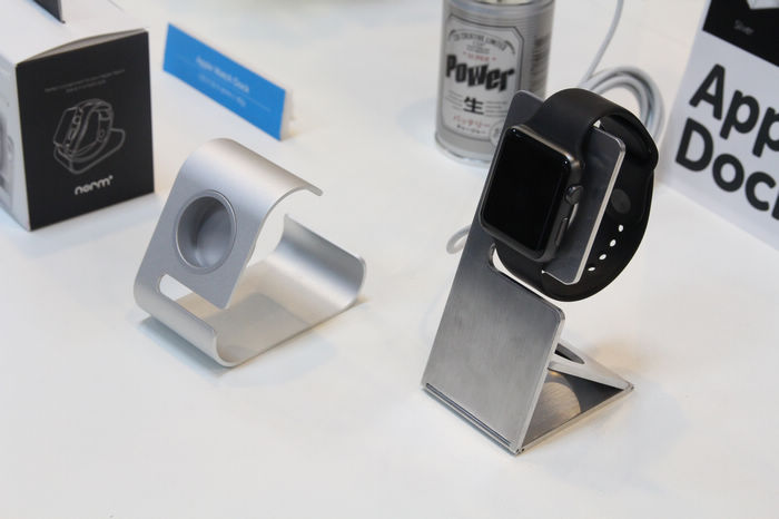 COI+同時展出自行設計的 Apple Watch 充電座「TRIG」,左邊的是已經上市的產品,也可以當手機座架,右邊是新設計的版本,同樣是非量產上市版本。