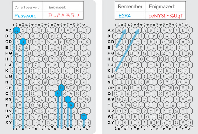 現代人必使用的Facebook、推特、Instagram的、Gmail、網路銀行,我們要記下太多密碼,太簡單易被破解,太複雜又記不住,kickstarter 出現了一本神秘的口袋筆記本 “Enigmaze” ,靠這本筆記本,你就有多種方法來建立強大的密碼並安全儲存,最棒的是,這些強度高的密碼你完全都不用記在腦子,當你需要這些密碼時能快速取得它們。