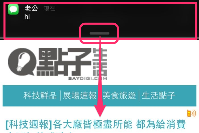 之前當我們在瀏覽網頁的時候,若是朋友的訊息通知進來會出現在上方告知。但是只要點下那個通知,便會離開我們目前正在瀏覽的網頁,切換到該通訊應用程式的頁面,等到回完還得再重新回到自己的原先瀏覽的網頁。而現在若是 iMessage 進來,我們只要將通知列向下拉,就可以不用離開正在動作的頁面直接回訊息了呢!