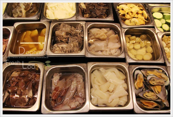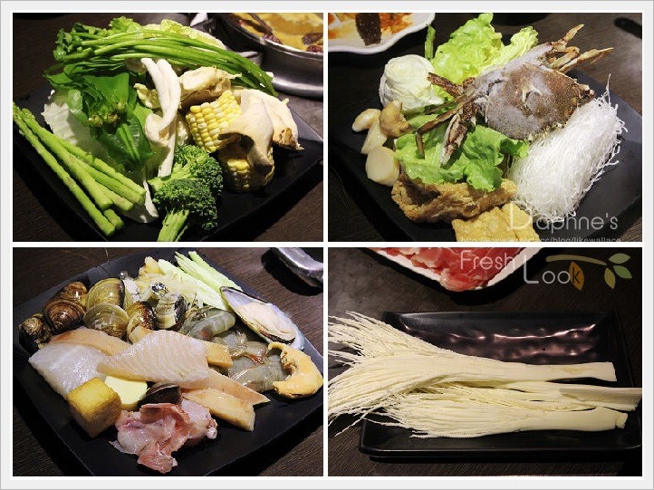 冰櫃的生鮮食材極豐富精彩,有一般火鍋店不常見的娃娃菜、水蓮、蘆筍、山蘇、秋葵、劍筍、菱角、日本山藥、山藥….及光菇類就有近十種,看到眼花…海鮮有旗魚、魴魚、鱈魚、鯛魚、旭蟹、螃蟹、石蟳、草蝦、蛤蜊、白蝦、蛤蠣、干貝、鮮蚵、孔雀蛤、魷魚、花枝、章魚,連田雞肉都有。
