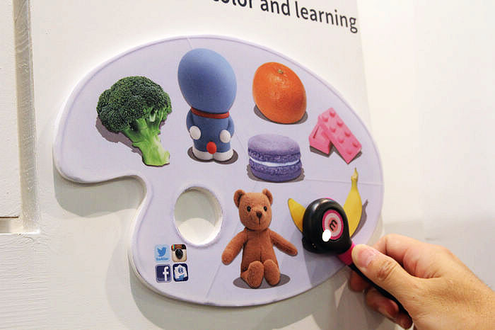 把平板與吸色觸控筆用藍牙連線,吸到顏色後,就可以在平板上塗繪上色,在平板安裝 App,能建立自己喜愛的顏色清單。目前 iOS/Android 系統的平板都有支援。