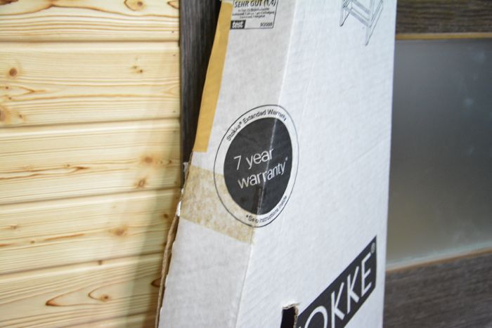 Tripp Trapp 成長椅的包裝是非常簡單的梯形盒裝,側邊還有那七年保固的字樣。是的,原來只要買他們家木製商品都有七年的保固耶!