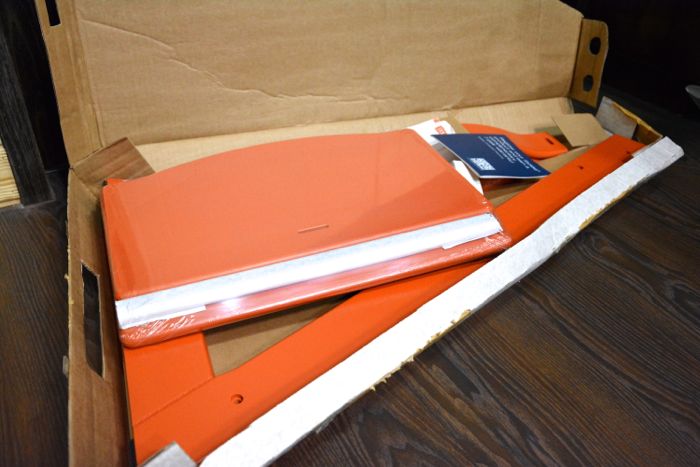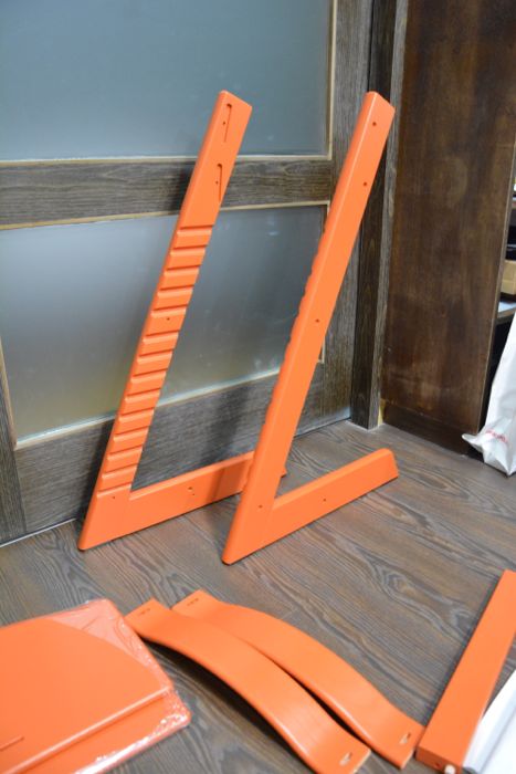 打開箱子就看見 Tripp Trapp 成長椅的各部分躺在裡頭,我們這次為艾登挑的是比較鮮艷一點的橘紅色,想說這樣就算平常不用餐的時候擺放在家中一角都還看起來是個挺有生氣的藝術品。