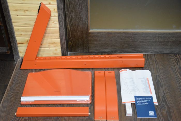 其實總共的零件組也很簡單,就是成長椅的兩側、兩根支架、兩片椅背和兩張當坐墊和腳墊的木板以及一小盒螺絲與說明書。