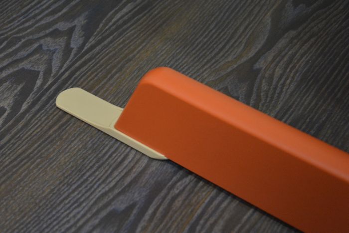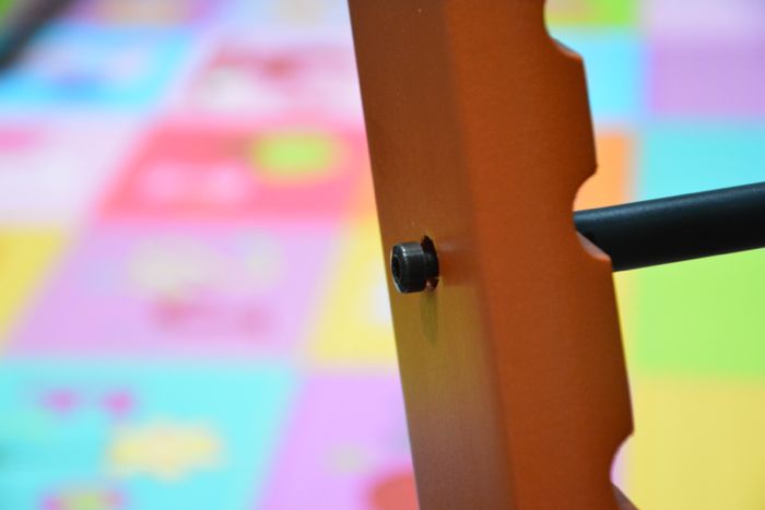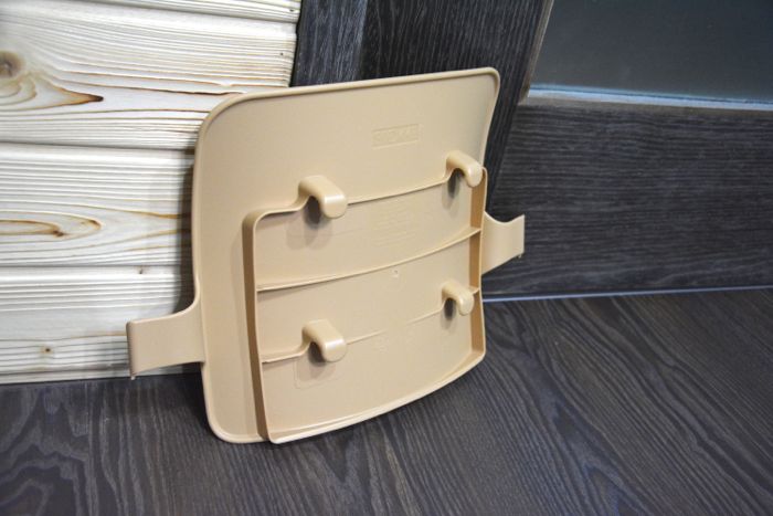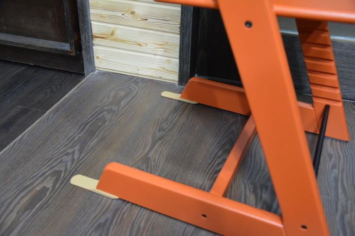 除了椅背和護欄以外,那兩片是非常貼心的止滑墊。我們可以將這兩片止滑墊嵌入椅腳,透過將椅腳與地面接觸面積延長,就能夠避免寶寶將來長大,踢桌子造成椅子向後翻倒的意外發生。