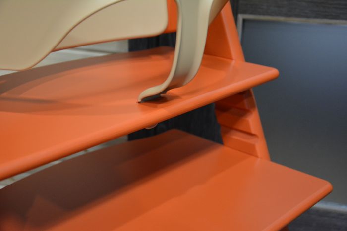 講到 STOKKE,事實上從入手它的推車- STOKKE scoot V2 後就對這育嬰界中夢幻品牌產生了極大的信任與好感。而看了一下資料發現這張 Tripp Trapp 成長椅是使用山毛櫸木製作,也就是說它有著實木的堅固性特色,再加上可以依照寶寶的成長來調整座椅高度,更讓許多家長(根本就是我們嘛)決定帶回這張成長椅!