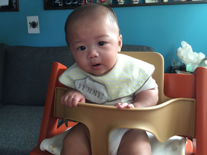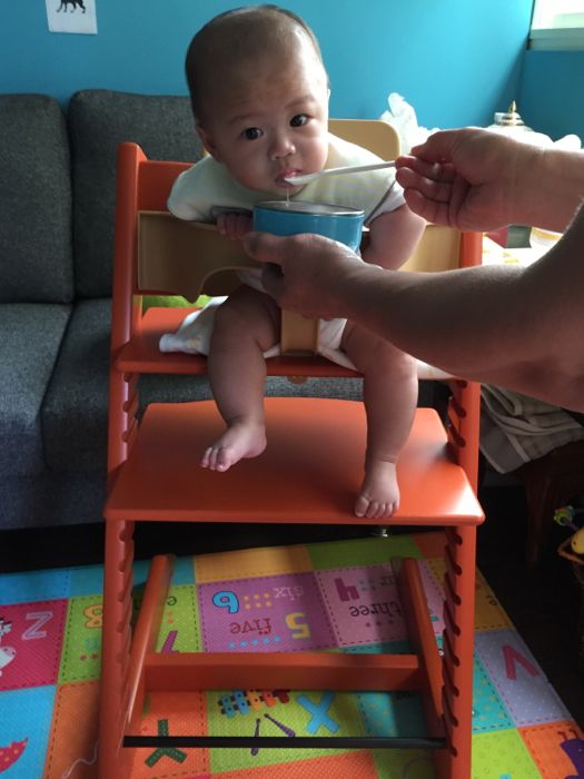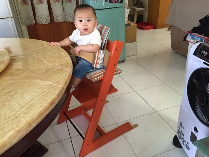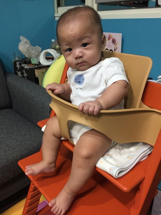 終於,艾登寶寶進入五個月,也就是醫生說可以開始邁入副食品階段囉!為了迎接副食品的到來,媽媽早早就幫他開始物色所謂的餐椅,其中一張就是這 STOKKE 的 Tripp Trapp 成長椅!