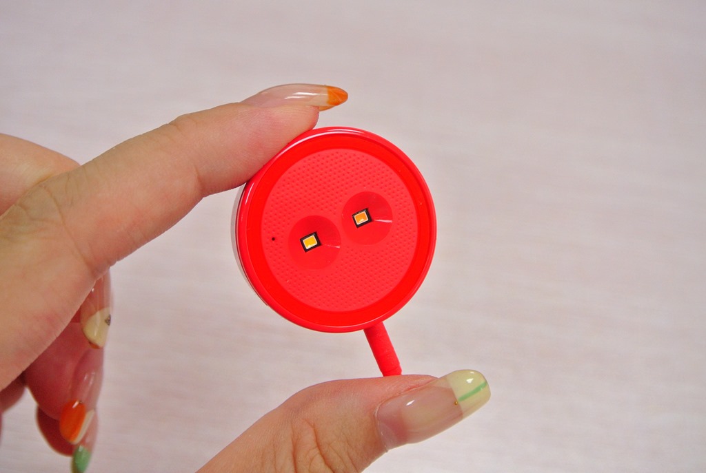 設計的部分,中間是雙色溫補光燈,左上角的小孔是指示燈,在充電中與充電完成分別指示紅燈與綠燈,讓使用者一目了然!