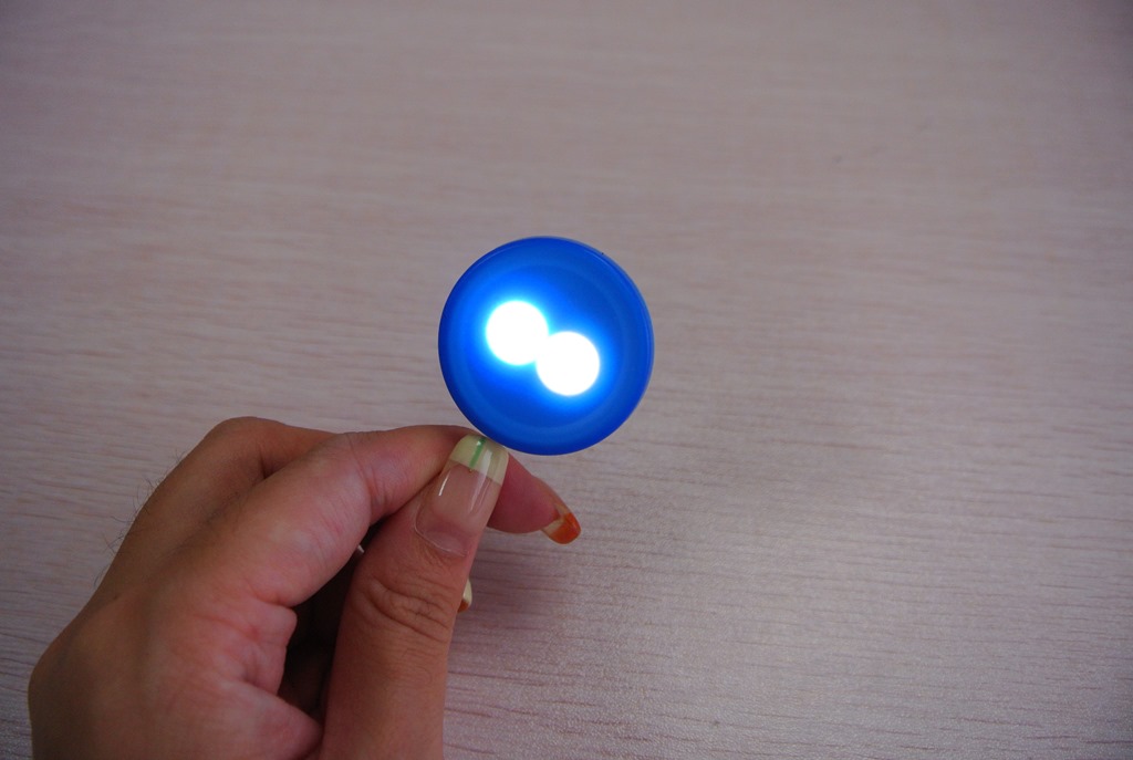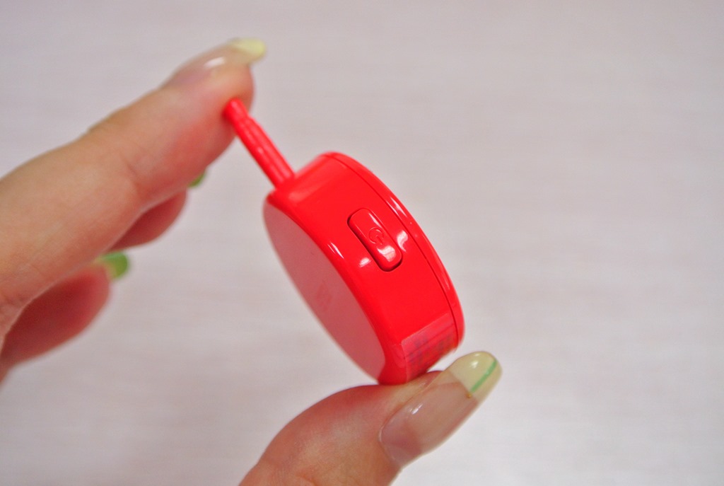 大小是 31.5 mm x 11 mm,下面的接頭可以插入耳機孔固定,在使用手機拍照時,開啟電源即可補助光源。