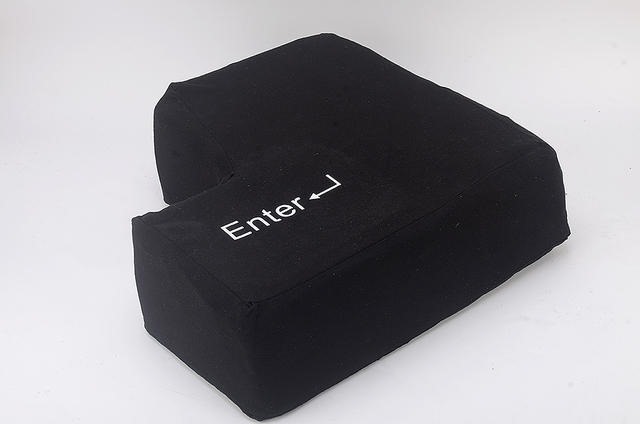 有些人會有抱抱枕的習慣,症狀不嚴重的,會放在家裡;嚴重的,除了家裡,辦公室也會放上一個!而抱枕有什麼用途呢?躺在沙發上時可以墊著頭看電視、中午午睡可以枕著睡、坐著工作時可以當墊背,還有生氣的時候可以拿來出氣用!然而市售的抱枕,大部分都是可愛的卡通造型圖案或是素面的圓形、方型抱枕,這些都不稀奇,現在和大家分享一款「Enter」造型的抱枕,沒錯!就是你鍵盤上的”Enter”鍵,即將顛覆你對抱枕的想像!