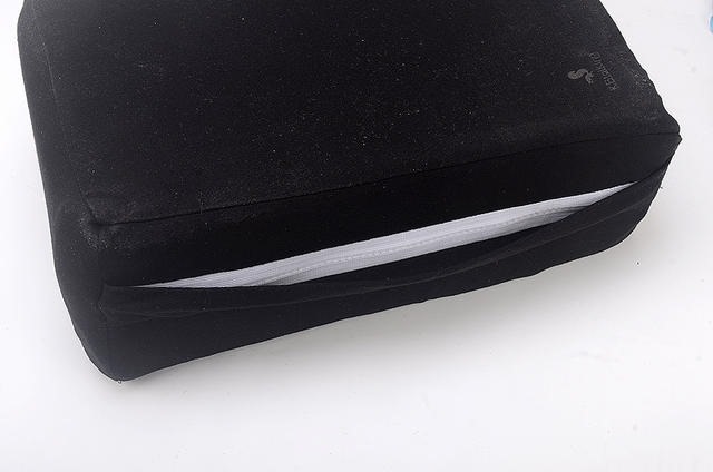 拉開拉鍊後,還有用一層布料包覆著記憶海綿。有注意到使用者在乎的小細節,挺不錯的。