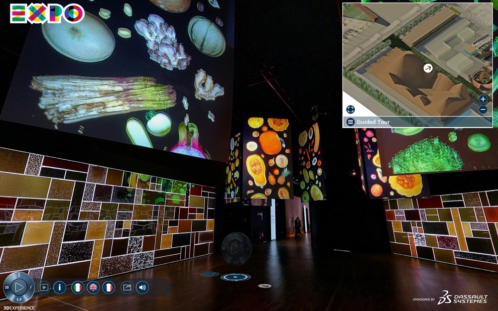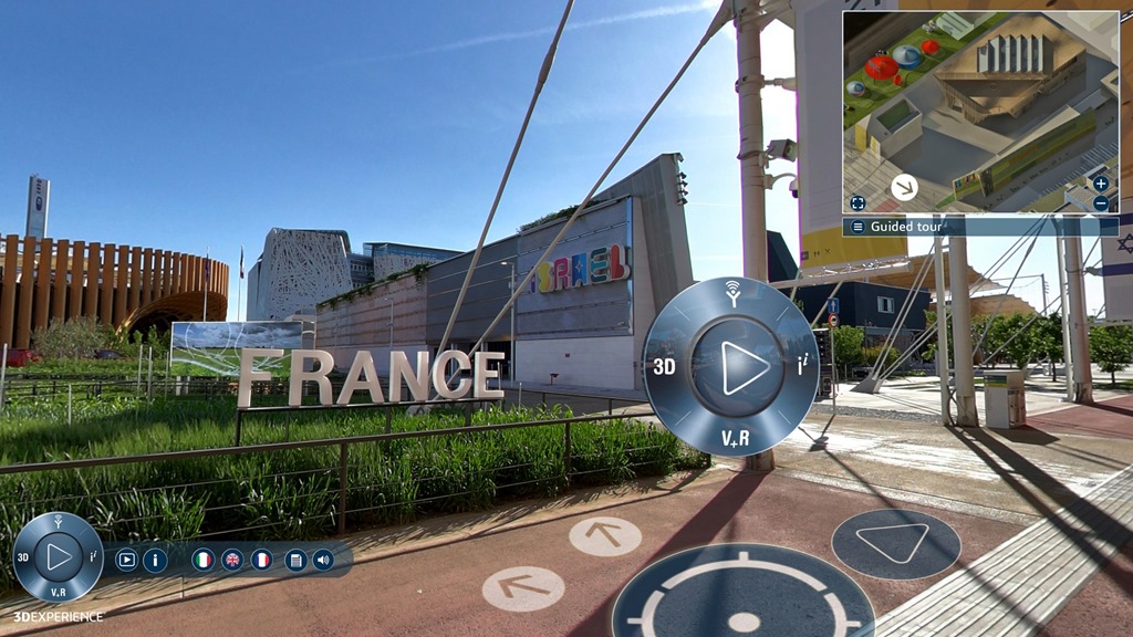達梭系統和米蘭世界博覽會(Expo Milano 2015)共同推出虛擬導覽進階版,以全新的寫實境界與性能,為2015米蘭世博會的上千萬遊客提供3D身歷其境式的即時體驗服務。虛擬導覽進階版結合虛擬實境與3D實際畫面,搭配寓教於樂的技術,以互動的方式分享世博會。