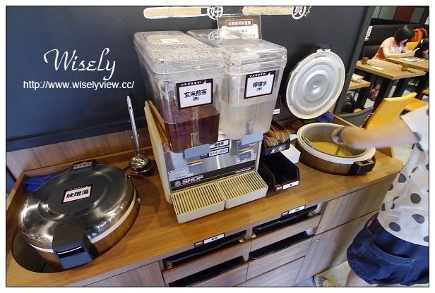 店裡的裝潢風格跟政大店看起來是差不多的,主要以高腳桌椅為主,再加上側邊有一般的矮桌,再配合半自助的點餐及熱湯茶飲方式。不過,店裡雖然有開空調,但感覺上還是有點悶,而燈泡的投射也降低了冷氣的效果,所以用餐舒適度也降低~可是,那一片綠的窗戶感覺還是很不錯,若這家店是咖啡廳那該有多好。