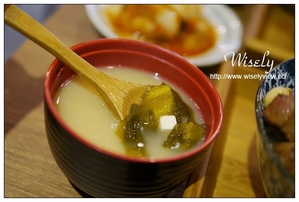 加點的配菜溏心蛋與泡菜我覺得都算普通,不過因為白飯較多的關係,所以吃到後來幾乎都是用他們在配;爆漿雞腿捲算滿好吃的,雖然沒有看到爆漿在那,不過也是搭飯吃還不錯~而免費味噌湯較鹹卻喝不太出味噌的滋味,略有點可惜。