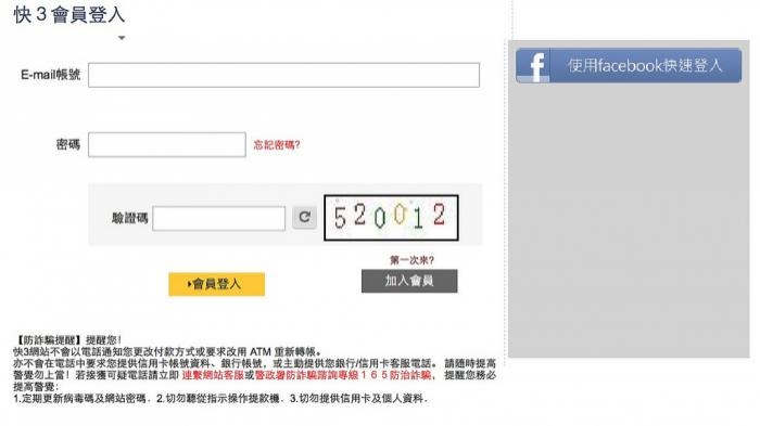 點擊「我要挑戰出價」的粉紅色按鈕之後就會要求使用者登入快三商城,不過這流程一點都不麻煩,因為你可以直接用 FaceBook 登入(右邊的「使用 facebook 快速登入」按鈕),所以你可以選擇直接加入會員、也可以用 FaceBook 帳號登入,端視你會不會覺得麻煩而定。