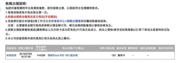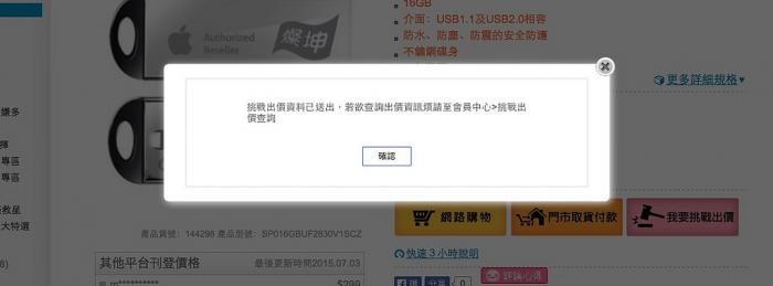填完之後並不是就能立刻買到喔!你填進去的數字還是得經過燦坤的審核才能通過,不過前面已經給你神秘數字了,所以想來買這支隨身碟對你來說已經不成問題了。倒是如果你要買其他東西的話,就請你認真的思考一下可能的數字並填入適當的金額與出價原因囉!