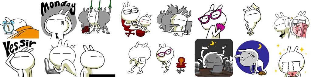 WeChat週二貼圖日推出「兔斯基(上班篇)」動態貼圖,加班又被老闆壓榨的兔斯基這次來WeChat與大家共度煩躁上班日了!每天上班煩悶、工作量暴增的兔斯基,從憂鬱星期一早上被鬧鐘驚醒開始,就開始沒日沒夜的加班。每天除了趕時間搭上「擠沙丁魚」公車外,到公司後還要面對意見超多的同事、發懶不做事的老闆,工作做的不好還被退貨「重做」、「加班」到半夜,壓力超大的兔斯基只好趁著空閒「打瞌睡」。精準傳達上班族心聲的「兔斯基(上班篇)」,只在WeChat貼圖市集免費下載!讓兔斯基動態貼圖陪你一起共度苦命上班日,紓解你的工作壓力吧!