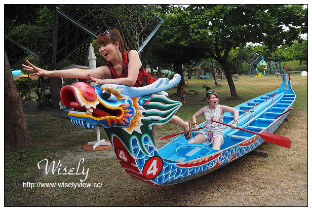 在後方可以溜小孩的地方也有個分享介紹舞台,但比較有趣的是在這裡居然還放個實體龍舟在這裡,讓遊客們可以親身體驗登船的感覺~(傻妹兩人姐搞笑中…)