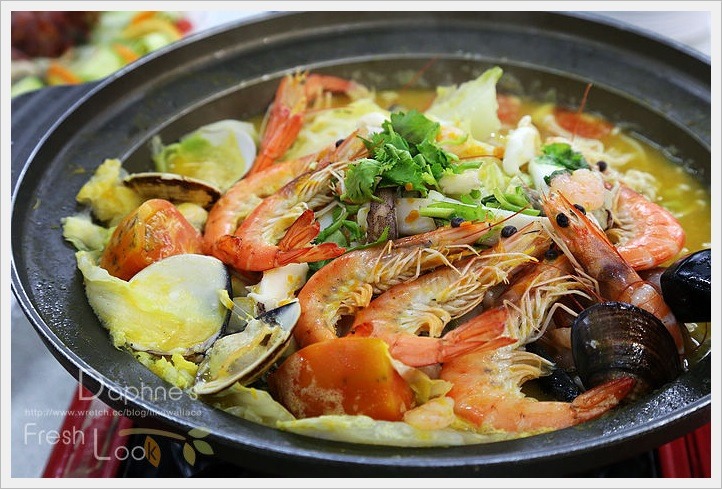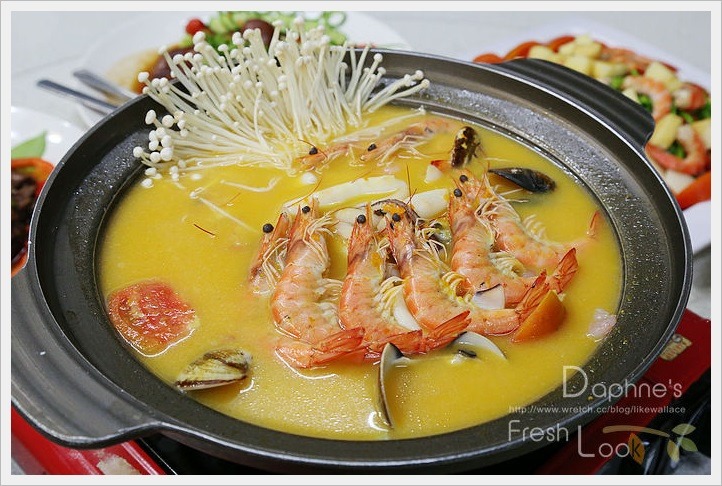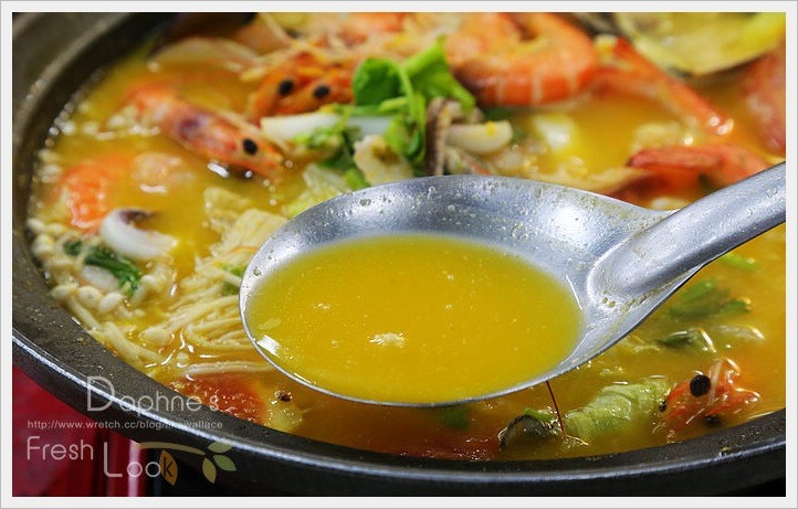 這一鍋不知道讓我吃了多少料,喝了幾碗湯,好對我的味好喜歡,一堆料放下去像不用錢一樣。湯底是整顆南瓜打碎加入椰奶,湯味香濃,但不似南瓜濃湯帶點稠度,湯底稍清。因此可以一直喝都不會覺得膩口,同時因為一直在煮海鮮與蔬菜,湯底越煮越好喝,也不會越煮越混濁,把食材甜味都煮出來了,海鮮熟了就先吃,彈性最好,蔬菜也不要煮太爛,才不會浪費。