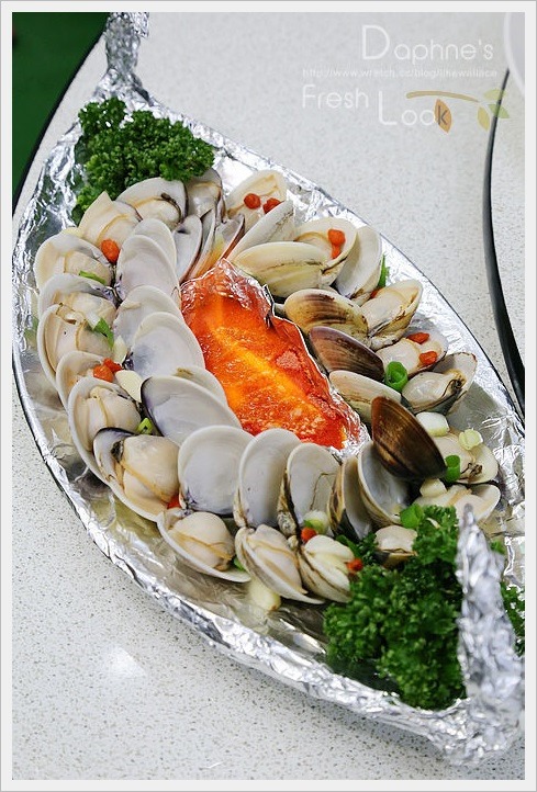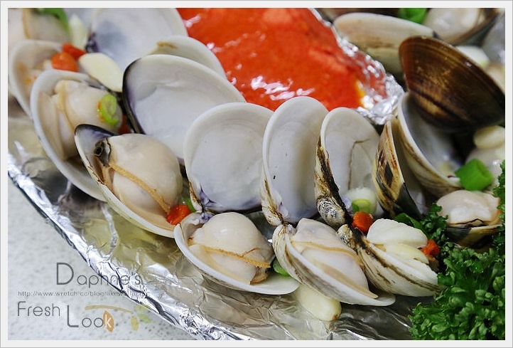 很少有機會吃到這麼大顆的蛤蜊,比十元硬幣還大,肉質極為飽滿肥厚嫩,天生具鮮味,連鹽巴都不用放,加蒜提味就非常好吃,咬下會噴出微鹹又的湯汁,搭配味甘的枸杞,收斂一些蒜頭強烈的味道,把食材優點都顯現出來了。