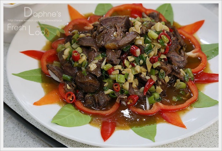 在料理的過程中把羊騷味壓過去了,滷得很香Q,帶筋有膠質, Daphne 寫食記多年以來從不敢吃生魚片到敢吃生魚片,但羊肉仍無法克服,是嚴重到一吃就很敏感,會馬上吐出來的那種,僅能借用旅伴的簡短心得囉!