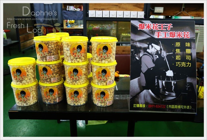 與老闆小聊一下,才知道老闆之前在桃園賣爆米花,後來回到家鄉開了餐廳,全家人一起經營,爆米花王子是老闆的兒子。小嚐了幾口,對原味驚為天人,老闆說,他不需要使用奶油就能把爆米花的香味做出,太厲害了!不加奶油卻一點都不會覺得不好吃耶!