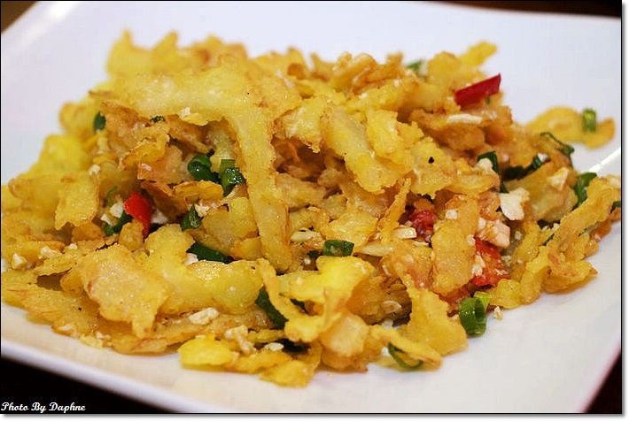 這好好吃!又好下飯,牛肉切片與蒜、辣椒爆炒,還加孜然,收汁濃,辣但不燥,顏色紅又油亮,Daphne 一直不愛孜然味,但是很喜歡這種搭法,食材爆得香,加了孜然添邊疆風情。