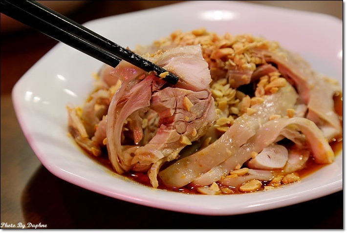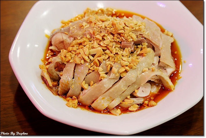 雞肉浸在特製的紅油裡,紅油麻辣鮮香,雞肉肉質細膩緊滑,紅油使用多種香辛料調製,主次分明,佐料豐富,不蓋去雞肉原味卻有增加肉質的鮮美細膩,越吃越爽口,一下就清盤。灑上花生,不加入更多的辣椒,整體嚐起來讓舌頭感到舒服。