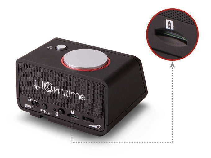 不想再被像警鈴般的鬧鐘聲響吵醒嗎?C1pro 有著 microSD 卡插槽的設計,可以讓使用者播放自己喜歡的音樂做為鬧鐘的音樂!在 microSD 卡中放入自己喜歡的音樂,讓悠揚的樂音喚醒你的每一個早晨!在時間與鬧鐘的設定上更是簡單,只要轉動上方的旋轉盤,轉到要設定的時間後,按下”SET”設定鍵,就完成了!