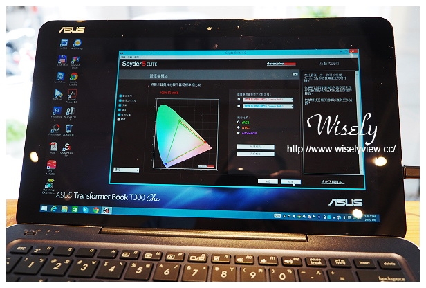 跟早期的它牌校色器不同的,就是它還滿方便操作設定,所以我找了個較空檔的午後時間,帶著自己的ASUS T300chi平板筆電到咖啡廳去調校,讓我可以較容易比較出調整後的色域範圍是否達到需求的標準。