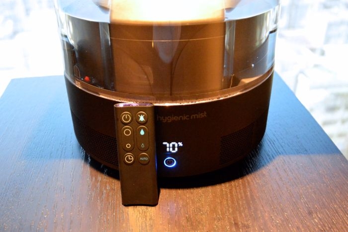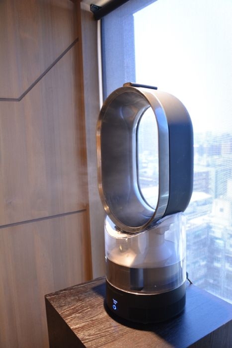 Dyson hygienic mist AM10 最大的特色便是在底部擁有 3 公升的加濕器,為氣喘與過敏人士貼心的打造舒適的環境。在溼度的部分,不僅能夠透過遙控器手動來調整想要的環境溼度,Dyson hygienic mist AM10 還會在開機的時候自動偵測環境溼度,來為使用者選擇最適合的純淨霧化涼風。