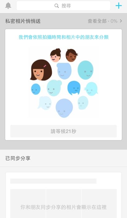 登入後當得到我們同意來讀取我們的照片,”Moments” 便開始進行照片讀取與辨識分類。