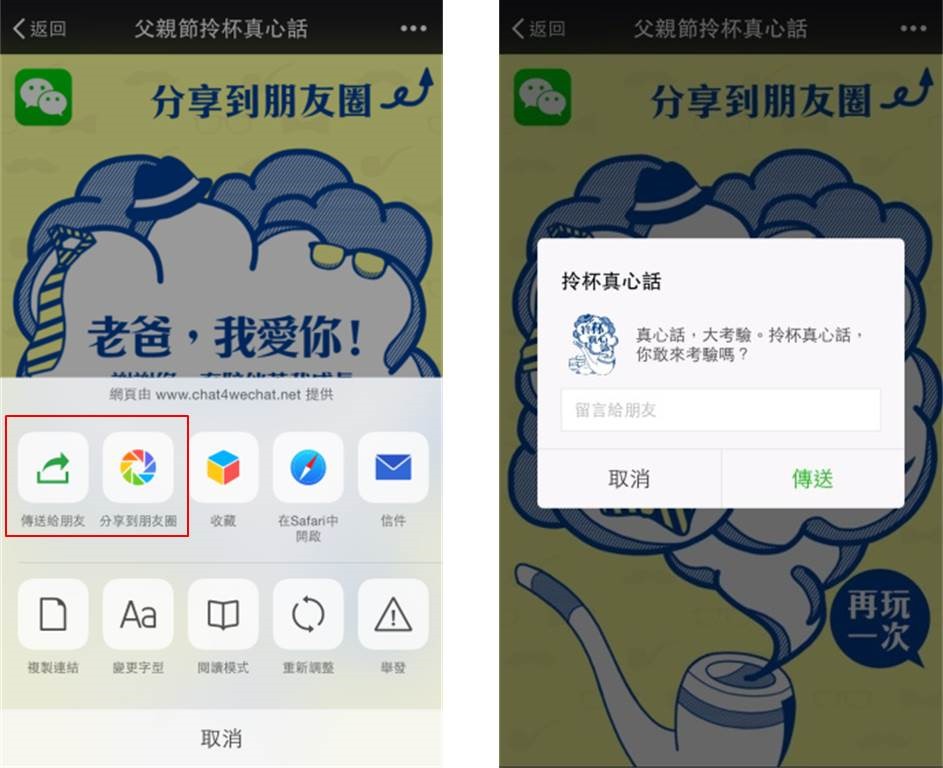 WeChat新聞圖檔父親節拎杯真心話_分享至朋友圈及聊天室