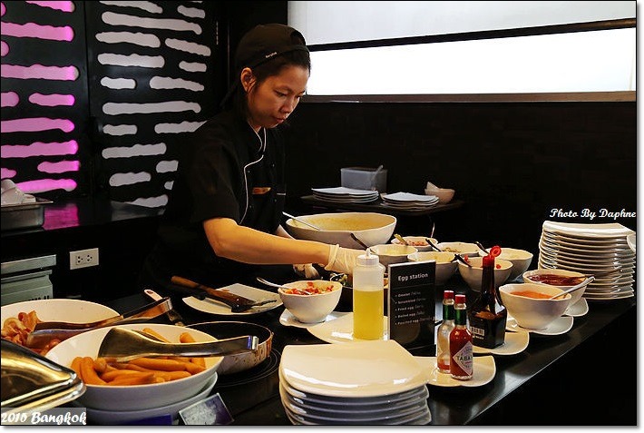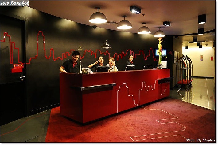 酒店的住房率很高,在 Check in 及 Check out 都小等了一點時間,感覺老外們特別愛。好不容易拍到櫃檯淨空的照片,酒店人員都很大方的入鏡,很活潑,除了 Check in 等有點久,服務很好,要離開飯店委託叫計程車時派來的車服務得很不錯,在曼谷委託飯店叫計程車比較不會遇到亂繞路的喔!