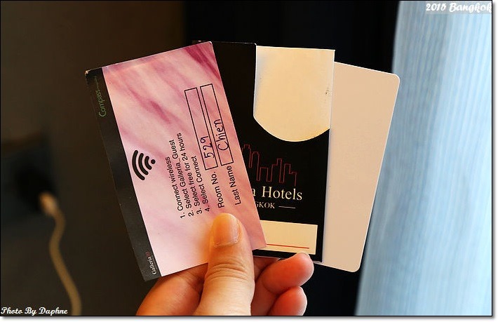 Check in 後,飯店會給一張房卡,到自己入住的樓層及客房都要感應進入,安全度高,WiFi 帳密也在上面。
