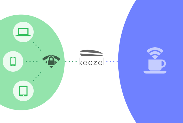 Keezel 是連接 WiFi 網路的路由器,讓用戶在咖啡店、酒店、機場等公用 WiFi 的場合使用,不需要做複雜的設定,先打開 Keezel 的開關,以手機搜尋並連接 Keezel 的 WiFi 訊號 (筆電及平板也是一樣),再用手機連上想使用的 WiFi 訊號。