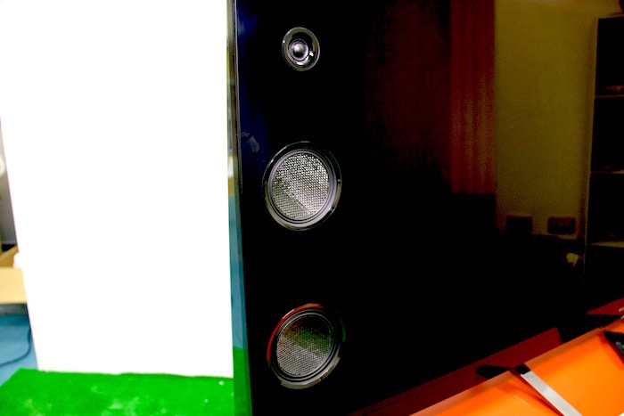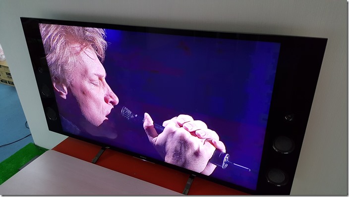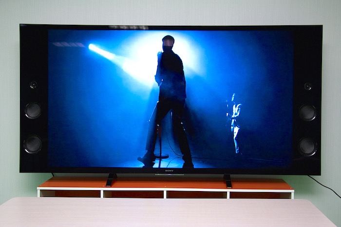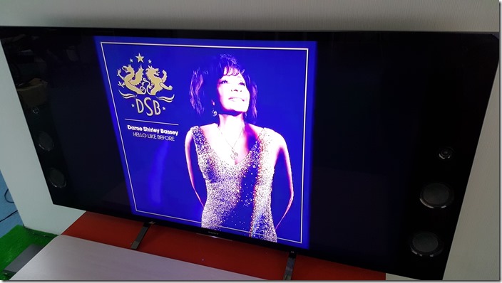 在實測聲音部分,首先聆聽 Shirley Bassey 在 Hello Like Before 專輯中所改編翻唱的 English in New York,在開頭的銅管滑音時就能感受到飽滿的力道,而背景的 Clear Tone 電吉他,音量不大卻能清楚表現其清脆又跳躍的聲響,而 Hi-Hat 的開合細節變化,也都清楚的呈現,可見其解析度並非一般電視可比擬。其實最令人感到驚艷的是 Bass 與 大鼓的聲響,顆粒清楚但不轟,雖然比不上重低音喇叭的強度,但跟一般獨立的音響設備比起來基本上沒太大差別了。在 Shirley Bassey 的聲線,可感受到有力量的聲音,但還帶著很有特色的喉音,尤其在高音時的音色變化,也能從電視中完全感受到,真的讓人有聆聽高級家庭劇院的氛圍。